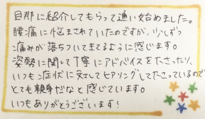 患者様からのお声です(^^)/